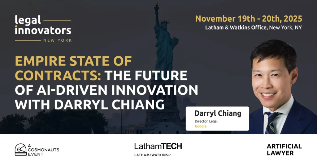 To dive deeper into Darryl Chiang’s insights and hear from other leading voices in legal innovation, join us at Legal Innovators New York! taking place at Latham & Watkins’ New York office on November 19 and 20.