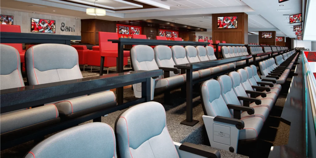 Located on the east side suite level, the 8am Club will deliver one of the most elevated gameday experiences available for Buccaneers games and all events at Raymond James Stadium. The air-conditioned club covers almost 10,000 square feet and offers all-inclusive food and drinks, stylish décor, comfortable lounges, and panoramic field views.
